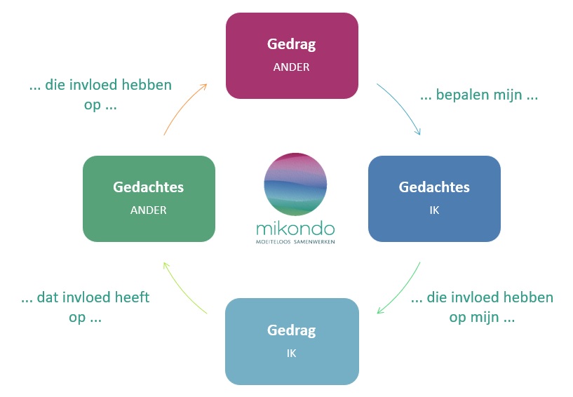 Ze werden uitgenodigd om op zoek te gaan naar praktijksituaties waarin zij niet reageerden zoals ze dat eigenlijk zouden willen waardoor de ongunstige situatie in stand werd gehouden of zelfs versterkt. Wat was precies het gedrag van de ander dat iets in hen triggerde en op zijn beurt aanleiding gaf tot meer van het oude gedrag, namelijk ja zeggen op bijkomende opdrachten ook al zat de agenda al overvol? Welke gedachten zaten daar dan achter? Wat weerhield hen ervan activiteiten af te bouwen die niet langer zinvol waren of geen bijdrage leverden aan het doel van de organisatie? In welk vicieuze cirkels zaten ze als team gevangen?